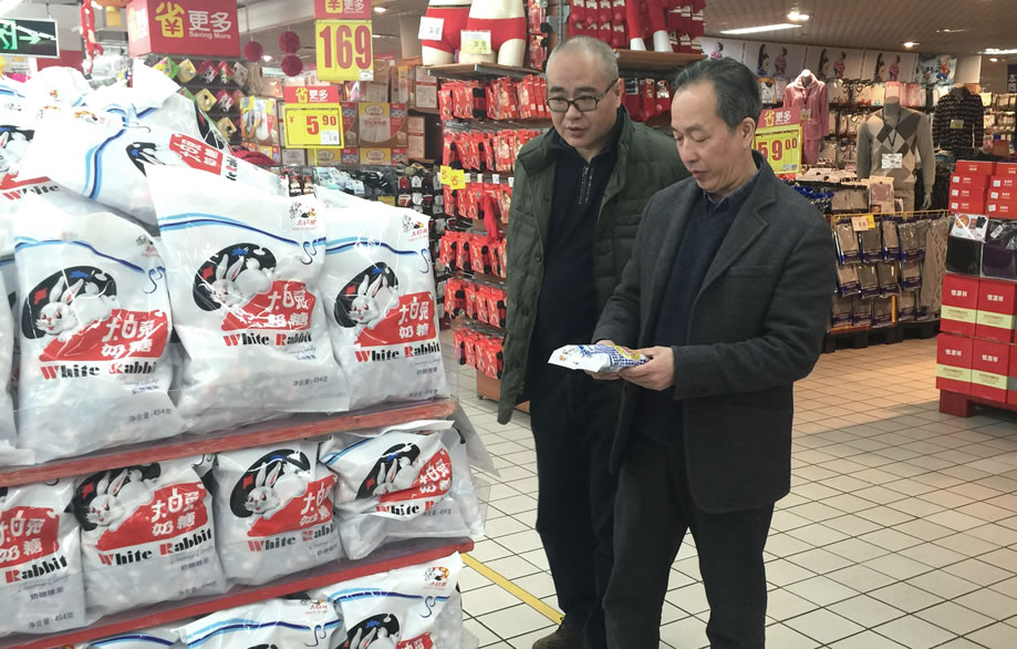 走訪過程中,藍總向一線銷售人員仔細詢問了大白兔等產品春節期間的供應、銷售、消費者反饋等等情況,并對產品的價格、出樣、上架、特殊陳列等等做了考察。在家樂福古北店,看到產品出樣齊全、陳列點多,陳列霸氣。藍總指出:對重點門店要重點建設,充分發揮重點門店的優勢,讓門店的大客流給我們帶來更大的銷量。在City super重點考察了大白兔Agnes.b這款跨界新品的市場銷售狀況。藍總指出,這款產品是我們第一次進行跨界產品合作,不僅是一款新品,更重要的是給大白兔這個民族品牌注入了新的時尚文化元素,希望能挖掘出更大的市場潛力。期間,公司副總經理兼供銷公司總經理吳堅就傳統旺季的市場銷售工作的開展狀況向藍總做了簡要匯報。