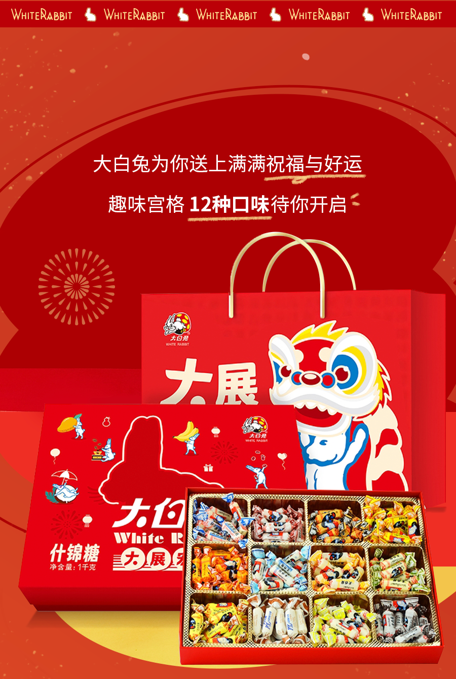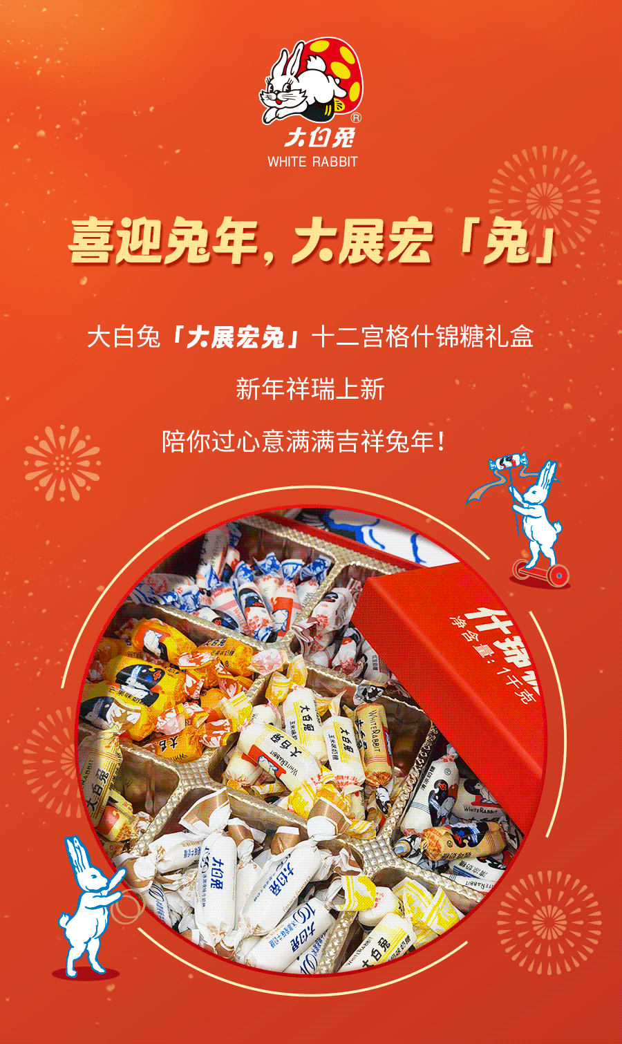 喜迎兔年,大展宏兔 大白兔-大展鴻兔 十二宮格什錦糖禮盒 新年祥瑞上新 陪你過心意滿滿吉祥兔年!