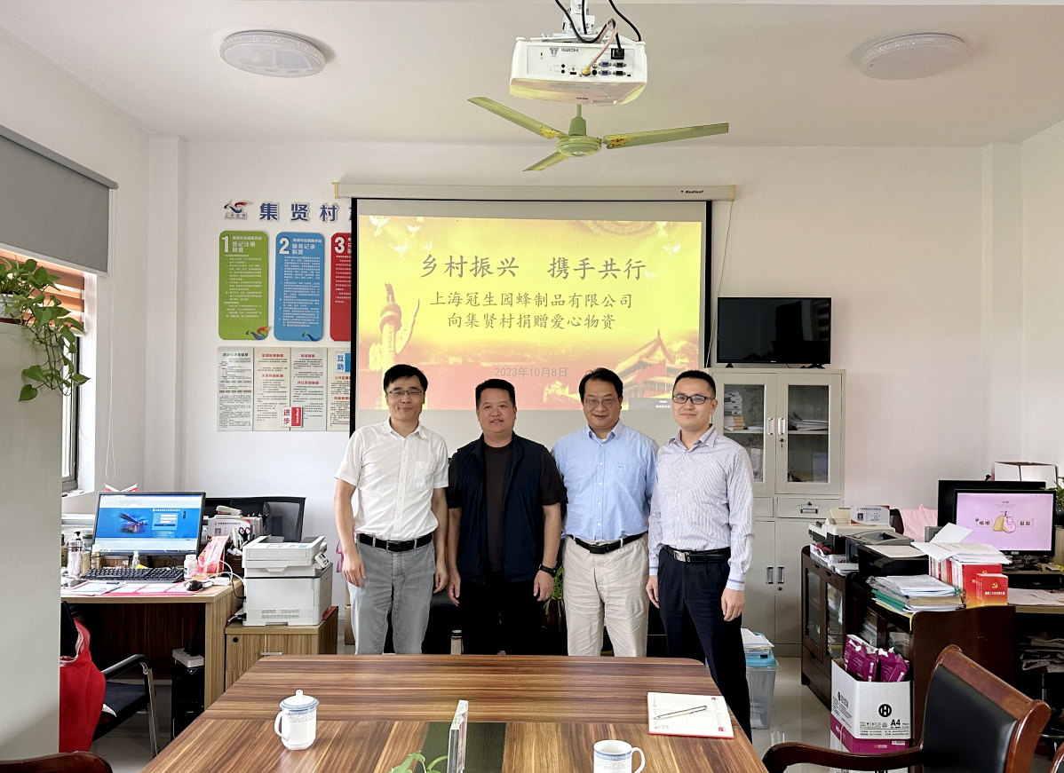 10月8日下午,冠生園蜂制品公司副總經(jīng)理賈英杰一行到奉賢區(qū)集賢村進行聯(lián)建慰問,向集賢村老人捐贈重陽節(jié)蜂蜜節(jié)禮,受到村黨總支書記徐洪衛(wèi),駐村指導(dǎo)員、黨總支第一書記李晨煒的熱情接待。在仔細(xì)聆聽了徐洪衛(wèi)對于集賢村今后的建設(shè)規(guī)劃后,賈英杰對集賢村的紅色之路設(shè)想表示肯定贊揚,雙方就經(jīng)濟、黨建等各方面開展深入交流,進一步探討未來合作方向及模式,助力鄉(xiāng)村振興,實現(xiàn)共贏發(fā)展。